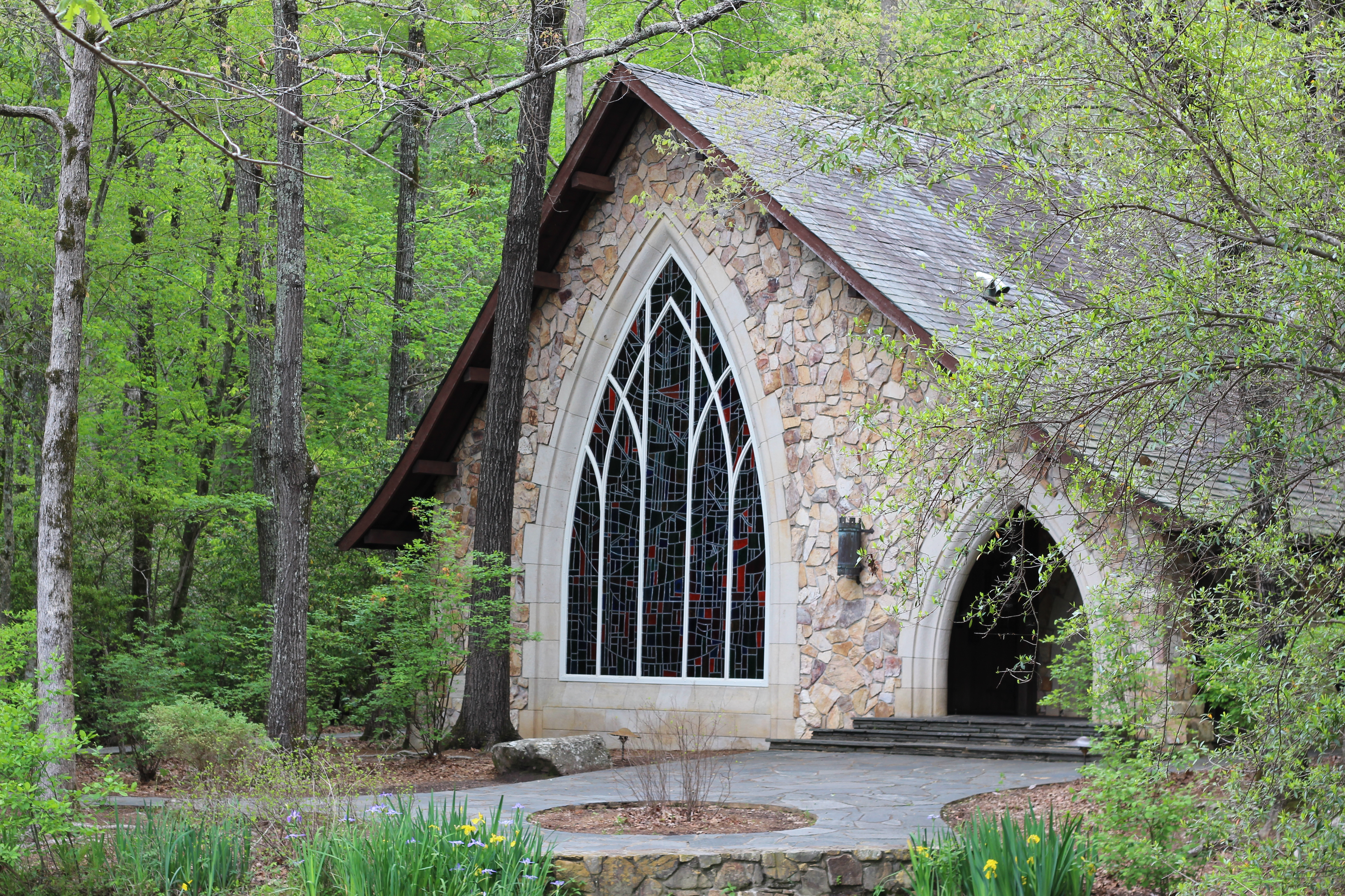 We took a detour on our hike to check out the Ida Cason Callaway Memorial Chapel. This stunning little chapel is tucked back in the woods and overlooks Lower Falls Creek Lake.