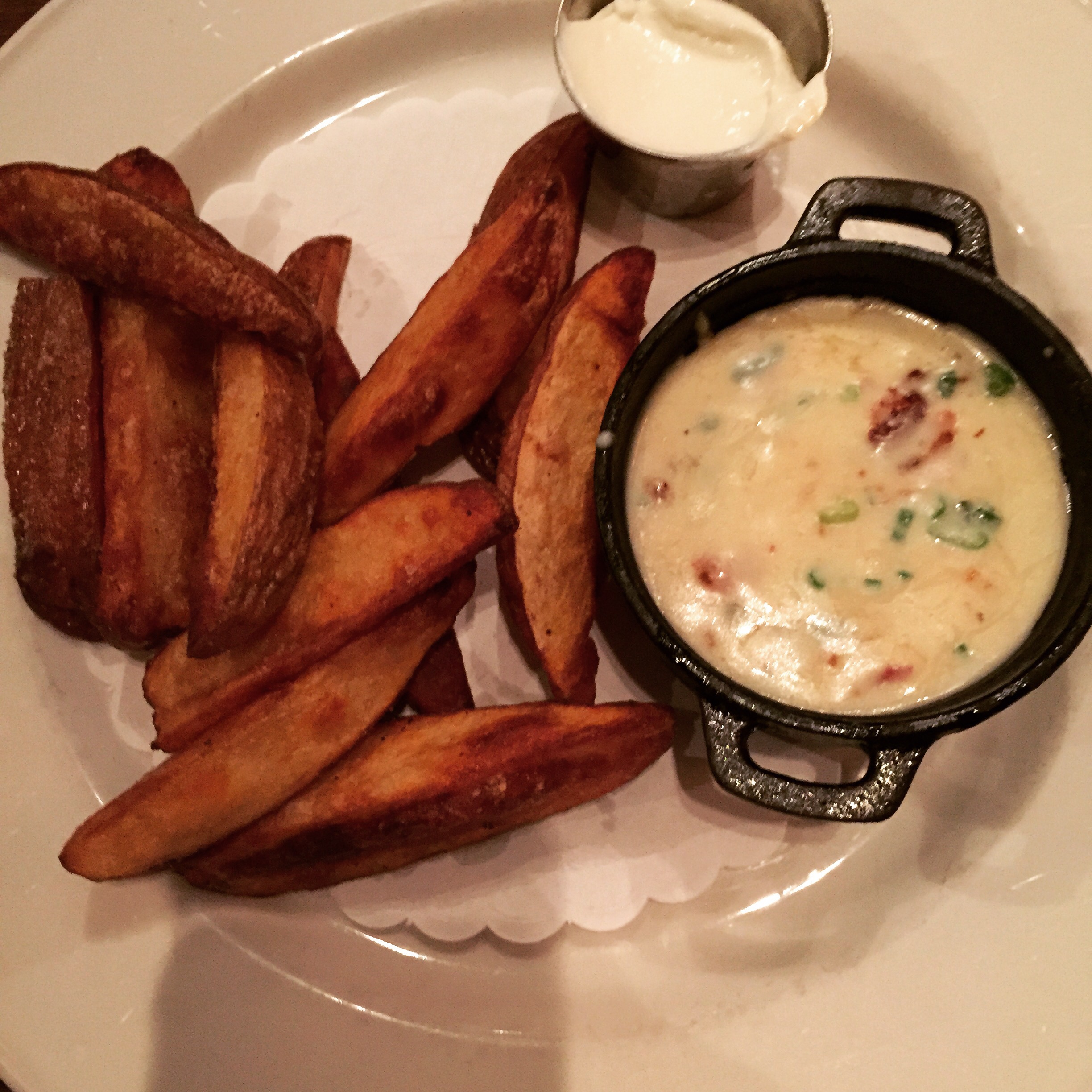 We shared a Vermont Cheddar and Bacon Fondue for our appetizer. The combination of crisp fries and melted cheese was like eating a stuffed, baked potato. I tried the cheese with a little of the bread that came to the table and actually preferred that to the potatoes (more of the cheese flavor came through).