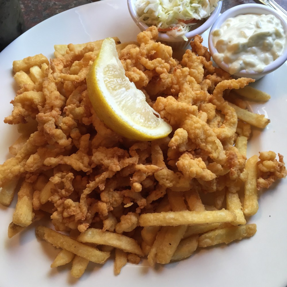 Matt ordered the clam strips which came on a bed of fries and a side of coleslaw. The clam was pretty good, but it was a lot of fried food to get through. If you’re going for a “fish and chips” dish, though, it’s perfect.