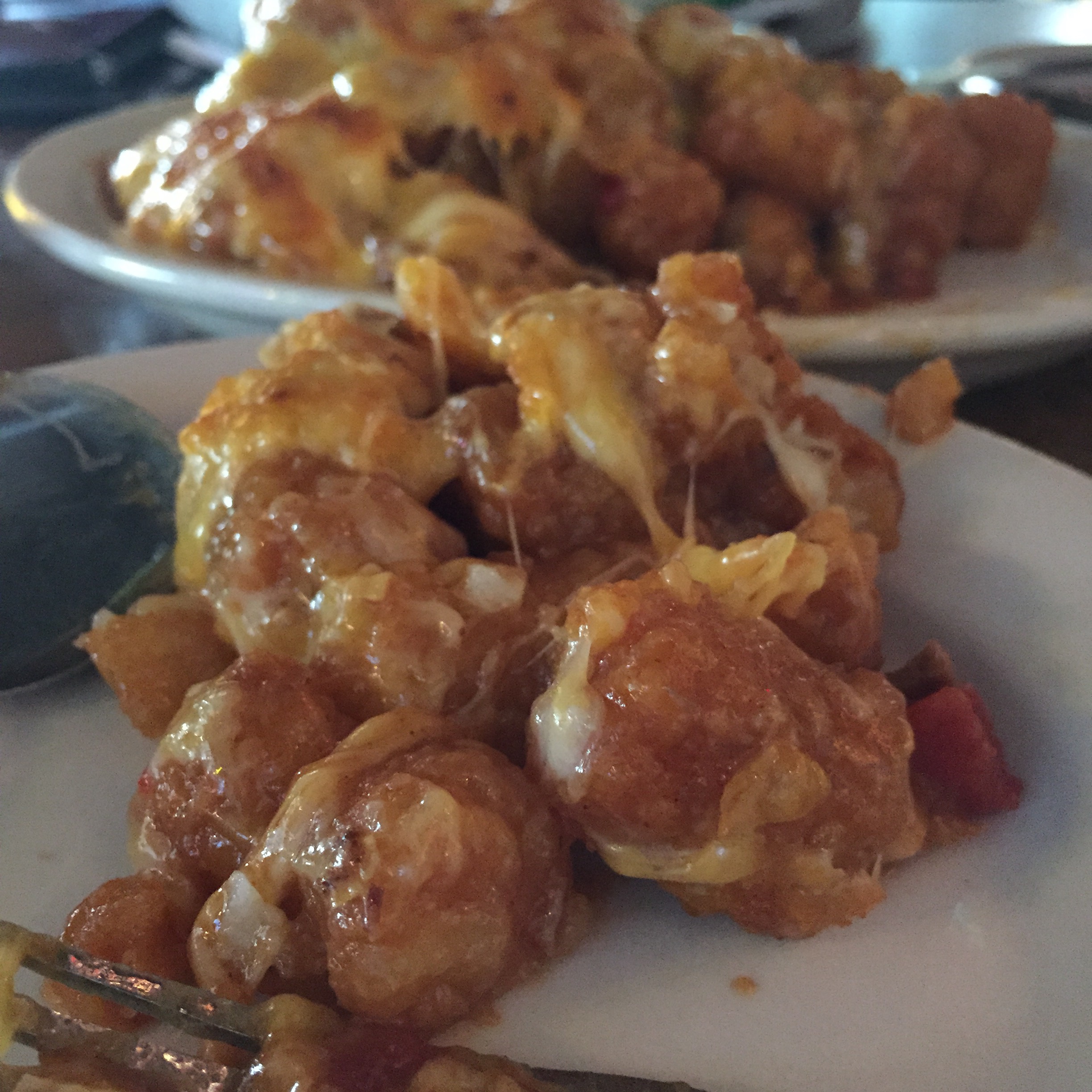 Since this is likely to be our last southern barbecue for a while, we got a small variety of dishes, including The Tomminator- tots smothered in savory Brunswick Stew and covered in gooey cheese. We were lucky to enjoy this meal with a couple of friends who had the afternoon off.