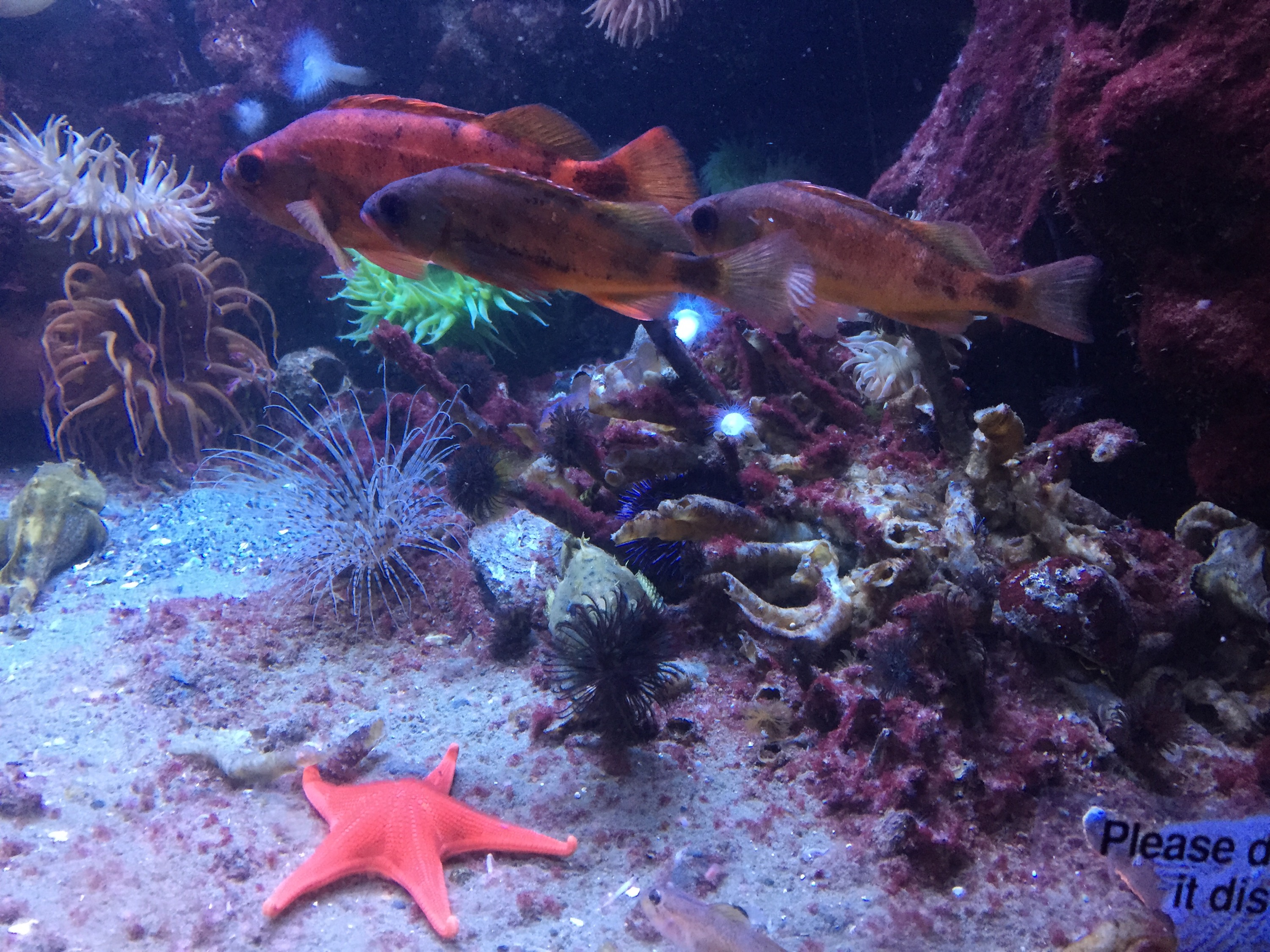 All good things must come to an end and so was the case with our whale watch. Fortunately, we still had the aquarium to tour. After scarfing a quick lunch and warming up with a cup of hot chocolate in the aquarium café, we made our way to the exhibits.