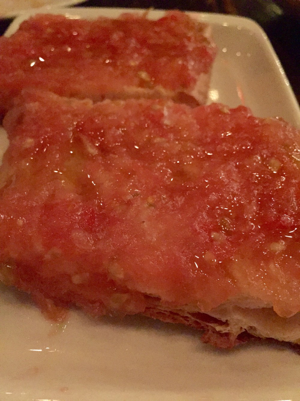 Nest we moved onto the Pan con Tomate, a toasted bread with tomato, garlic, olive oil and sea salt. The fresh tomato hit the tongue almost like a gazpacho, but was quickly followed by the strong bite of garlic and a kick of salt.