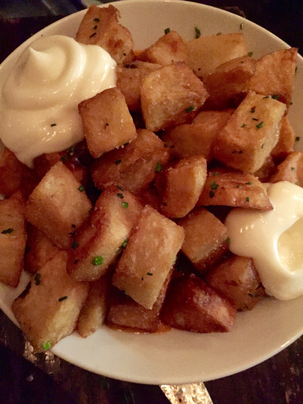 Remember how I mentioned earlier that my eyes got a bit bigger than my stomach? Well, I put in an order for the patatas bravas (fried potatoes with alioli and spicy tomato sauce) before the paella arrived. Unfortunately by the time these came out, we were so stuffed we could barely eat a bite or two and had to get them to go.