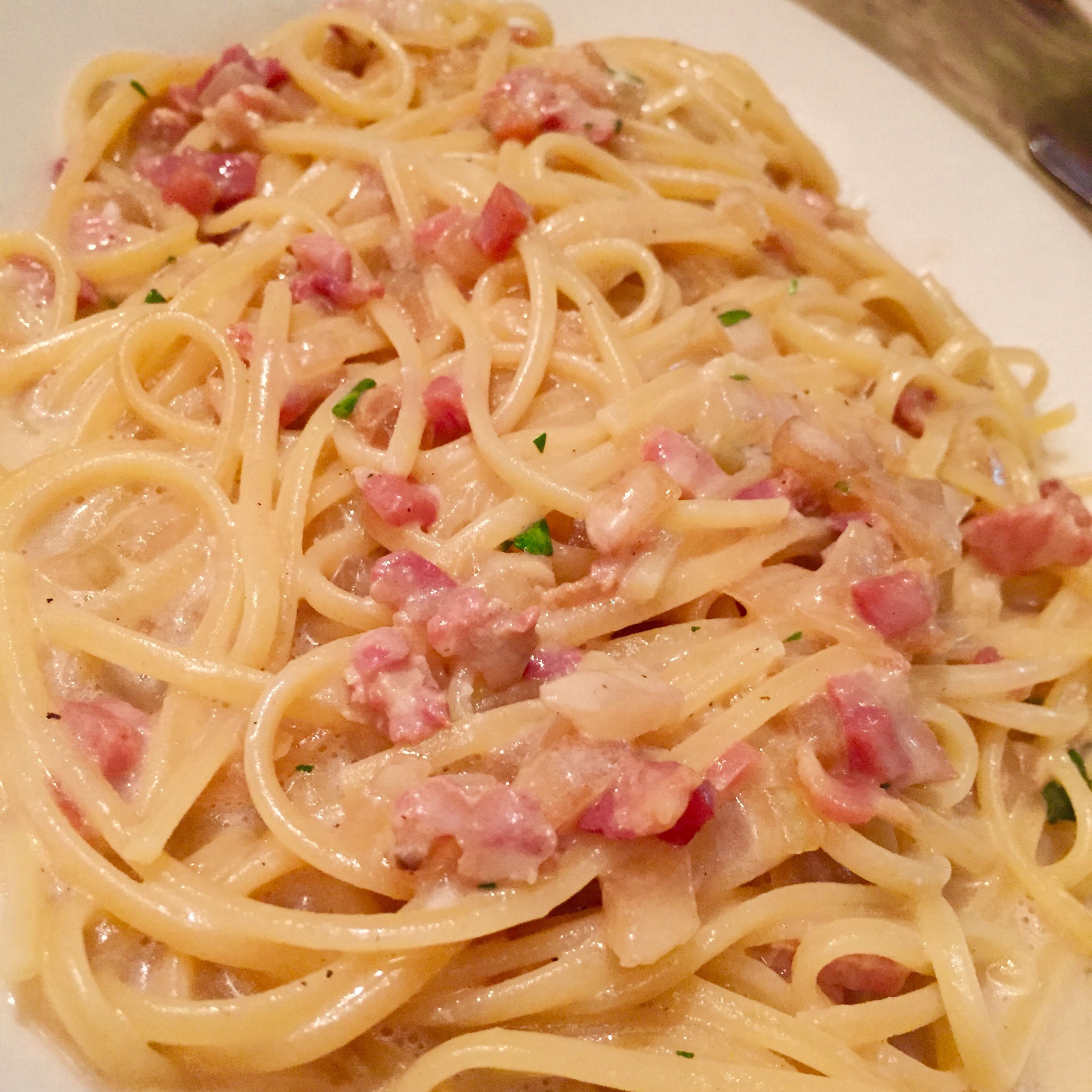 The food was respectable, though the service left a bit to be desired. I got the linguine carbonara and Matt the linguini and littleneck clams with fra diavolo sauce. Our appetizer was a burrata with fresh tomatoes from the “specials” list that night.