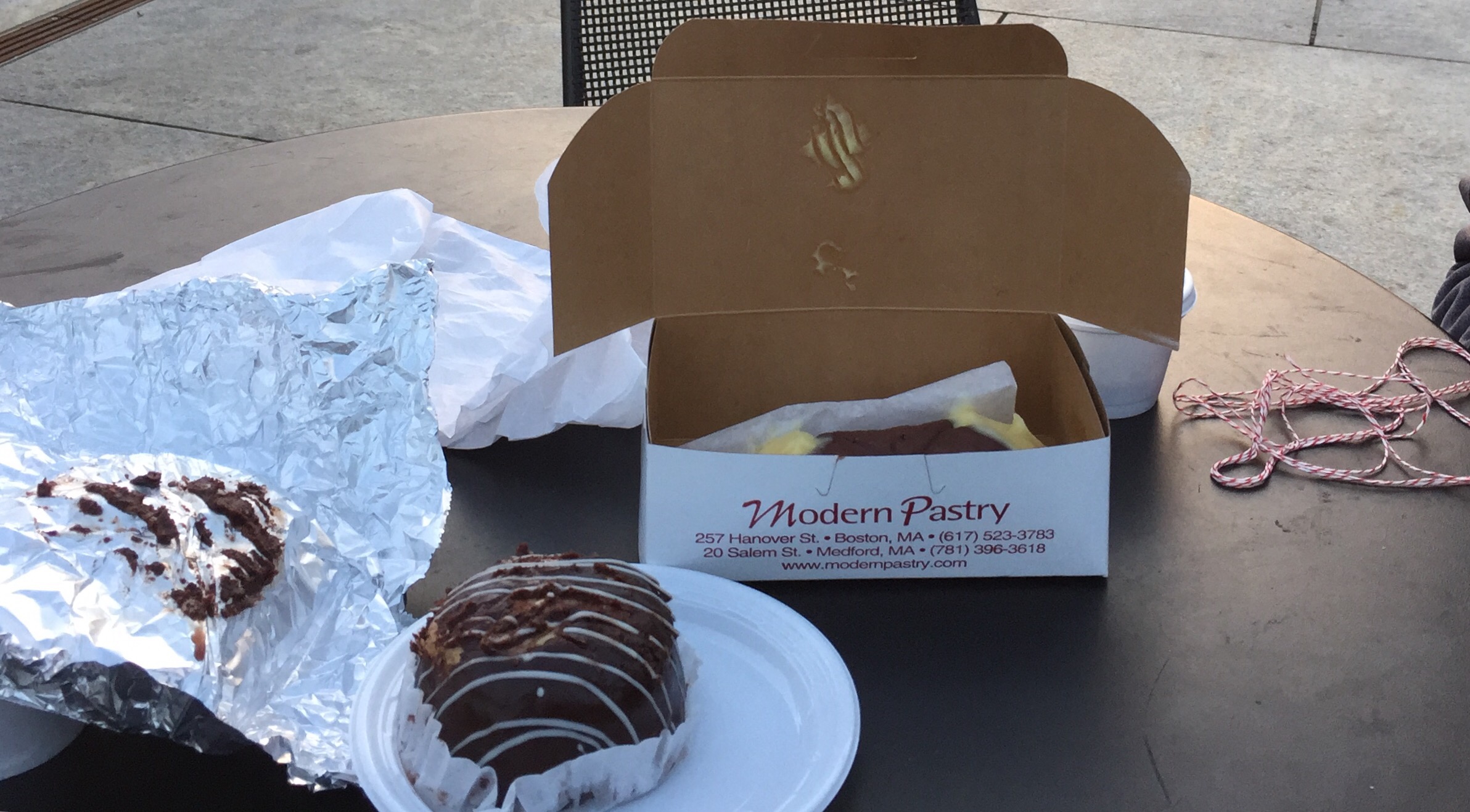 We took our espressos, cannoli and a mini Boston Cream Pie (picked up on a stroll through Quincy Market a few hours earlier) and found a bench in a nearby park to enjoy our treats and the view of the slowly descending sun.