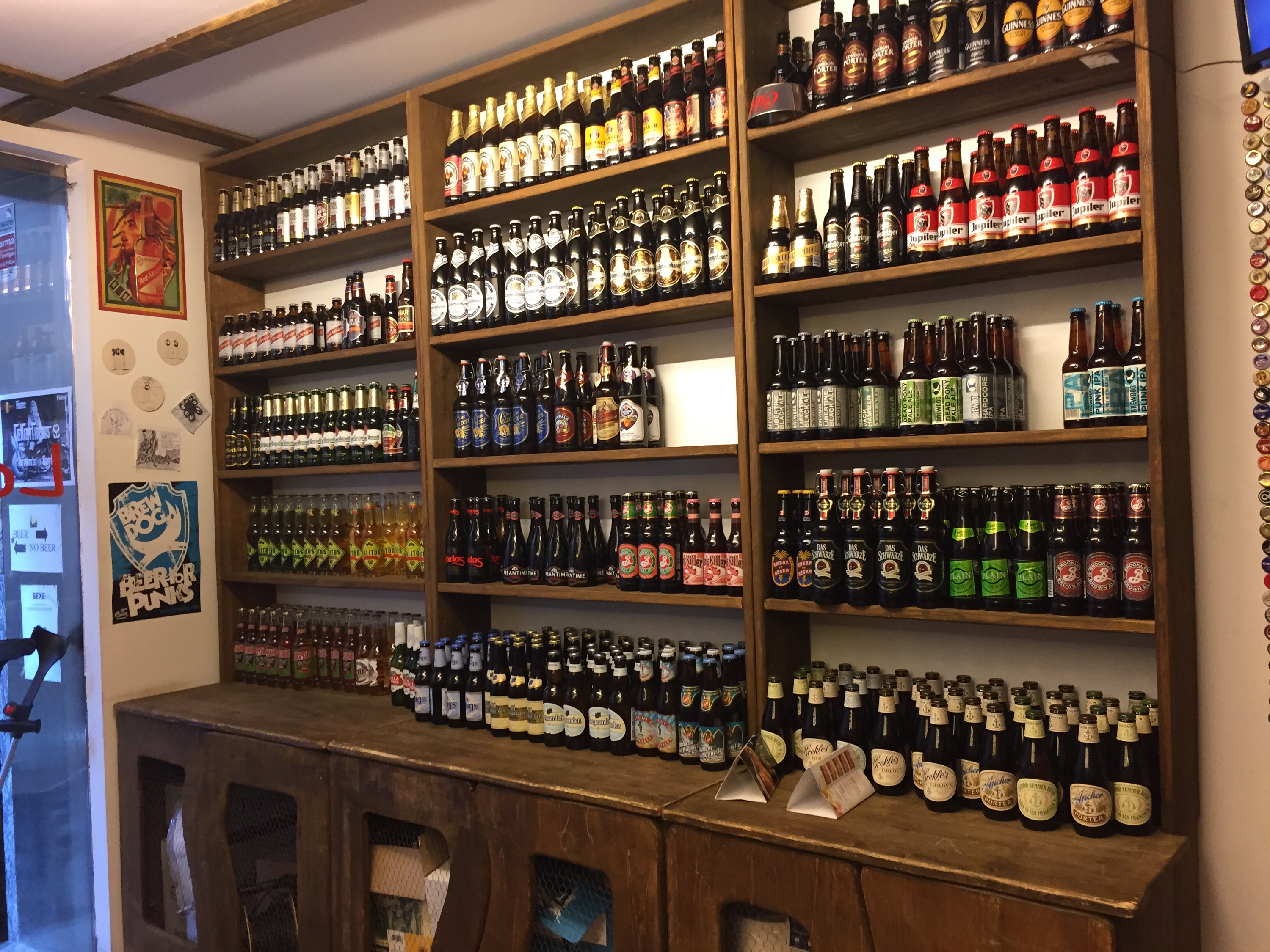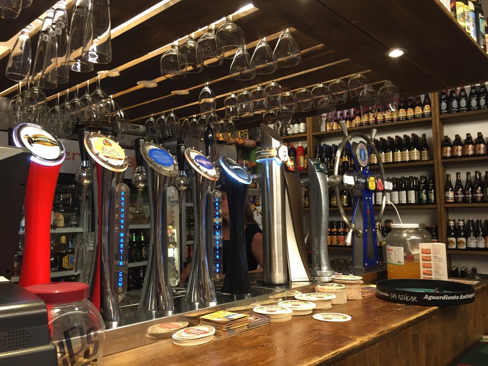 Saturday was a really warm day in Andorra, so after walking around for a little bit, we were in desperate need of a beverage. While we obviously slacked on researching our electronics prices, we did make sure to scope out the local bar scene and knew we wanted to visit La Birreria, a beer bar and shop with brews from all around the world (including a delicious porter made by the owner of the shop). We ended up finding the shop while looking for the old town, so of course had to stop in. Matt was like a kid in a candy shop.