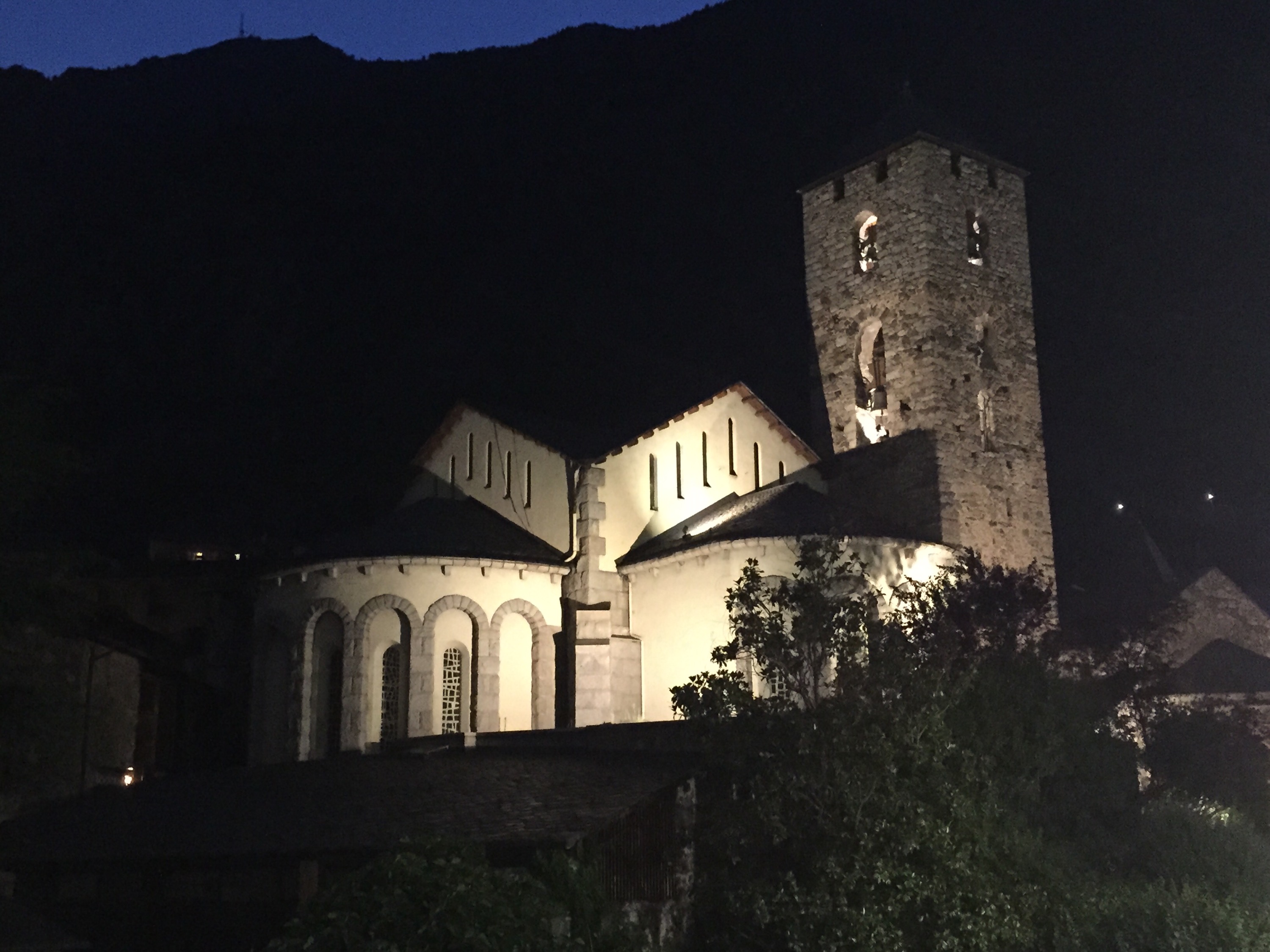 After dinner, we took a stroll up to a little square in the center of town where we’d seen people setting up for an event earlier in the day. We passed the beautiful Sante Esteve church along the way.
