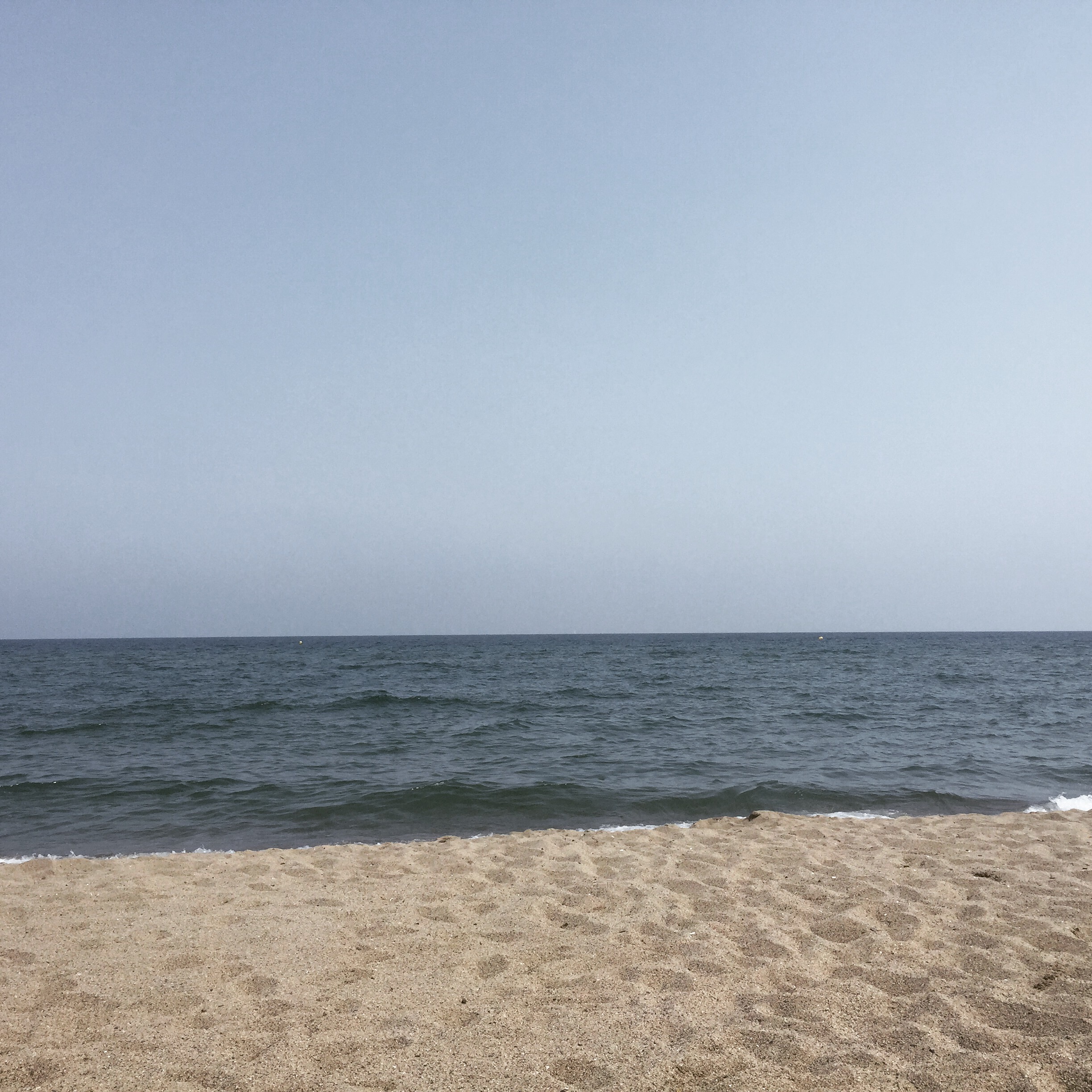 Finally we decided it was time to take a dip in the Mediterranean and we walked delicately over the corse sand. The edge of the beach dropped a bit before hitting the water which we soon discovered was a bit chilly–though not nearly as cold as the water in San Sebastian. We giggled and held onto each other as the strong waves crashed against our legs and stomachs, threatening to duck us with the gently tugging current. The water was surprisingly clear and we could see all the way down to where our feet were sinking into the rough sand. Neither of us were brave enough to go all the way in, so after we were wet enough we awkwardly scrambled up the slippery slope back to our towels.