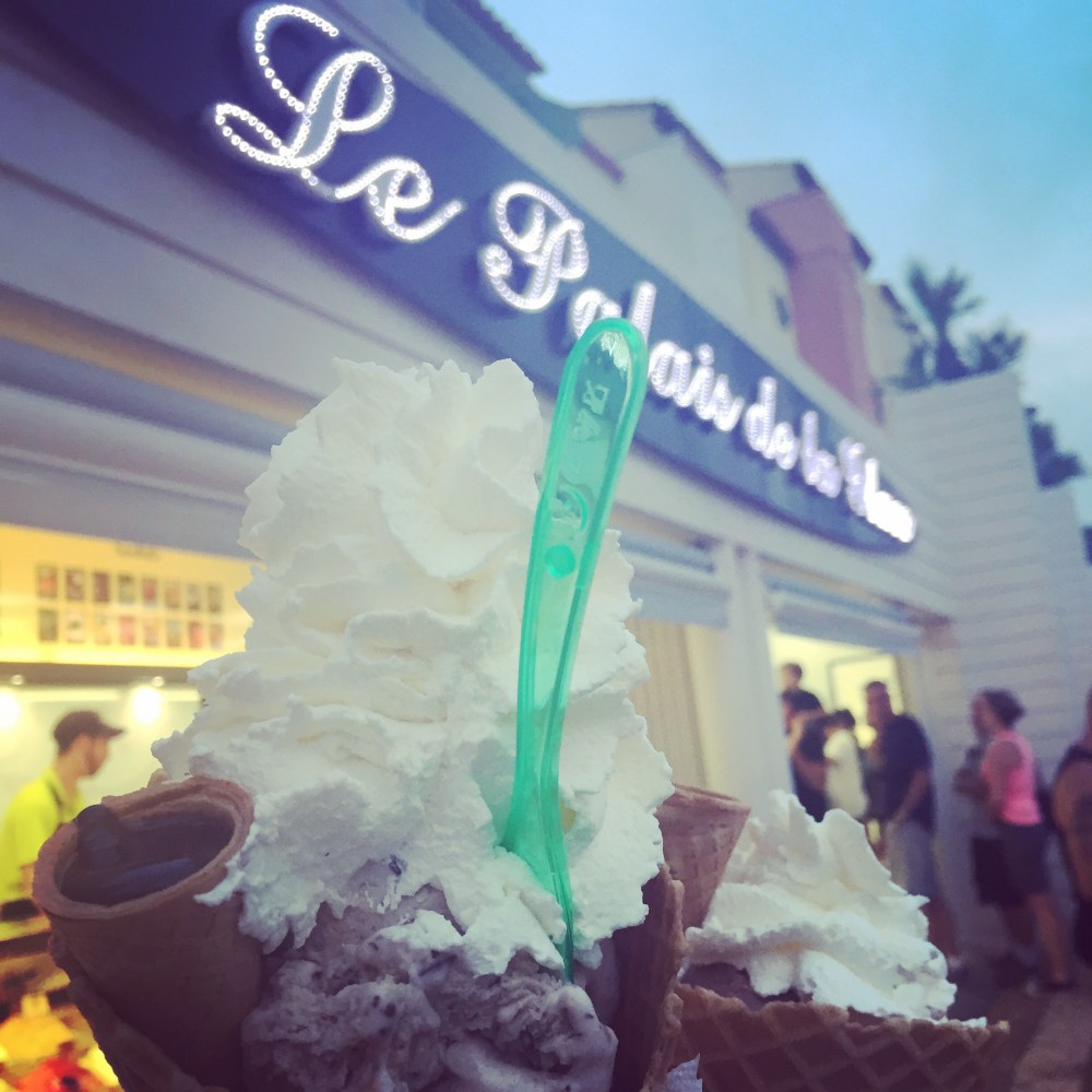 All of the flavors looked so good that it was very distressing to pick, but I finally settled on two flavors and made sure to top it off with chantilly. But wait—there’s more! Into my big waffle cone, they tucked a little sugar cone brimming with hot fudge. Best. Ice Cream Shop. Ever. I’d probably return to Port Leucate again just to eat there. If you ask Matt, he’d probably tell you I’m not even joking.