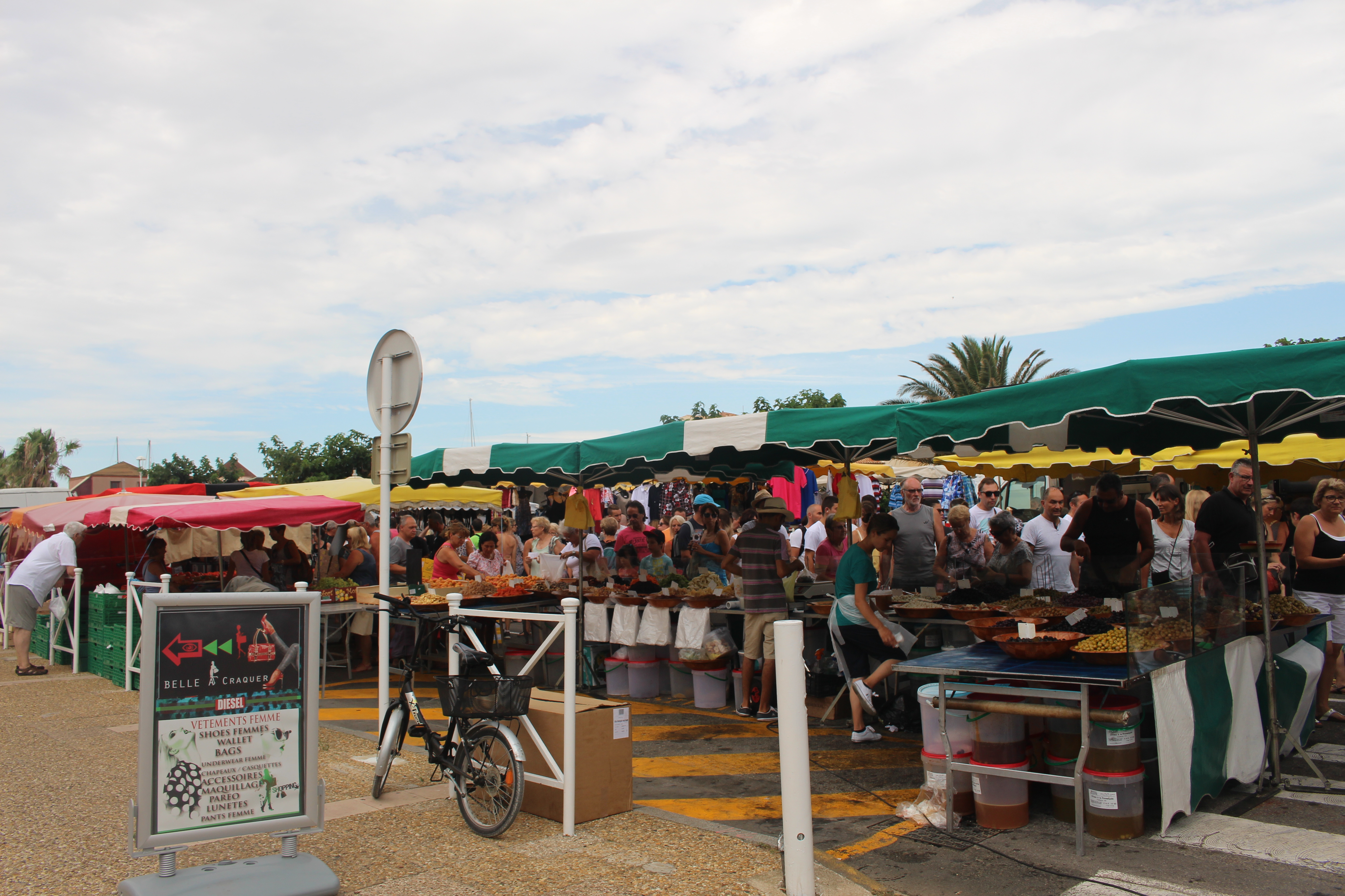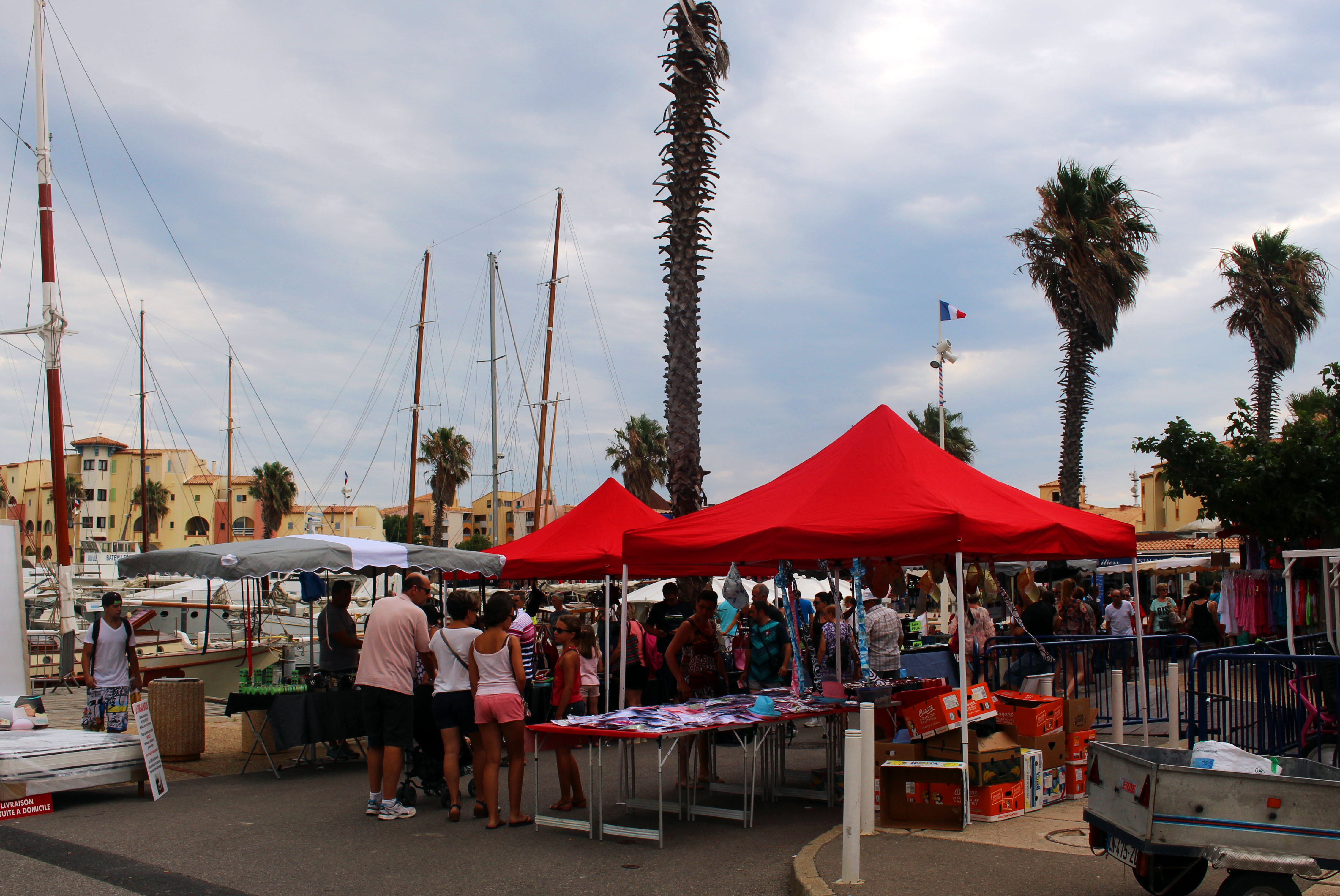 Sunday morning dawned on early and sweaty, but at least we had croissants and pain au chocolat ahead of us. The breakfast provided at the hotel wasn’t bad. We downed hot coffee and baked goodies before heading out for a quick peek at the market set up every Sunday in Port Leucate.
