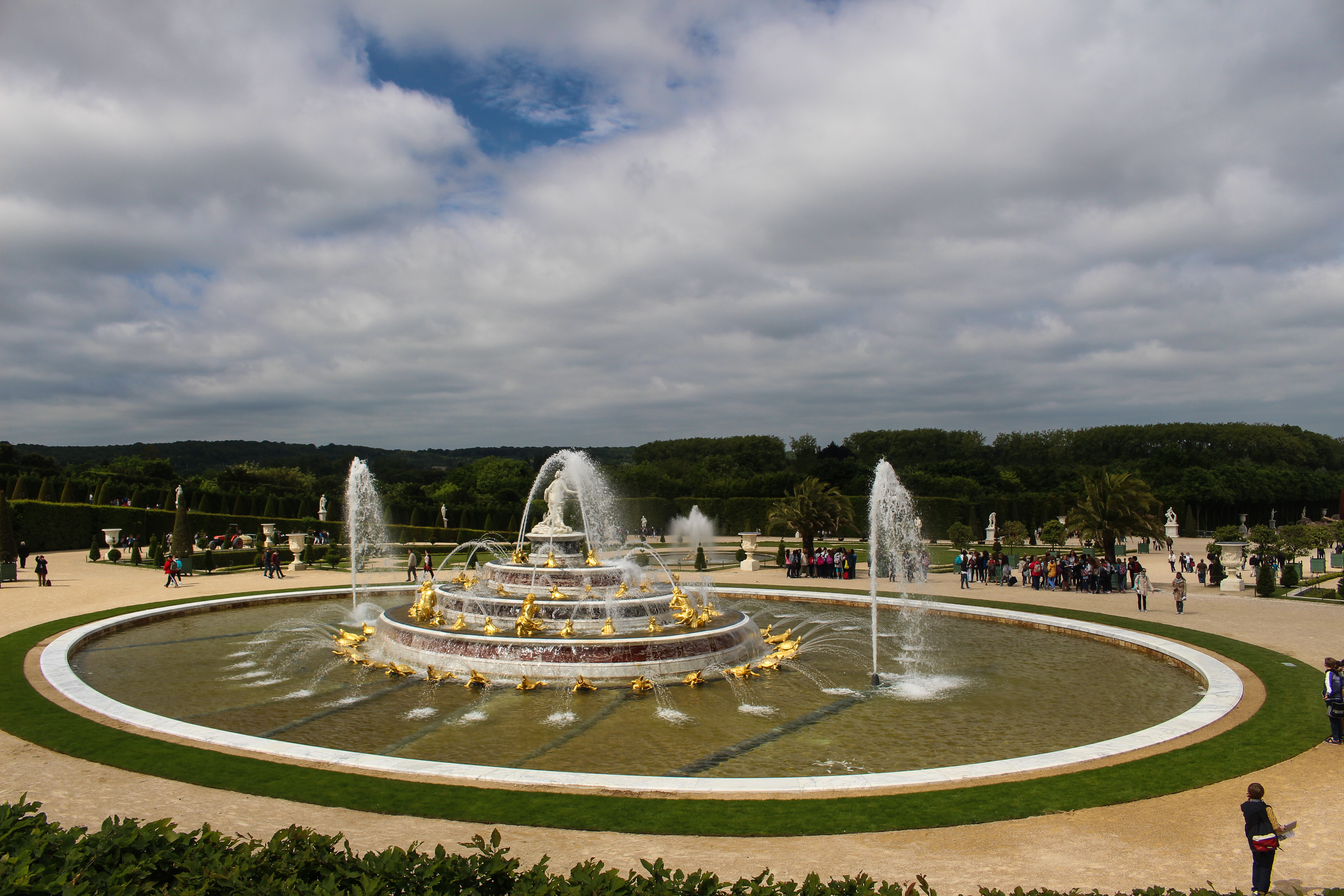 Fortunately we made it out of the chateau in one piece and made our way to the wider spaces of the massive gardens. As I mentioned, we were fortunate to be there on a day when the fountains were on and classical music was piped into the garden, making everything seem that much more grand and fantastical.