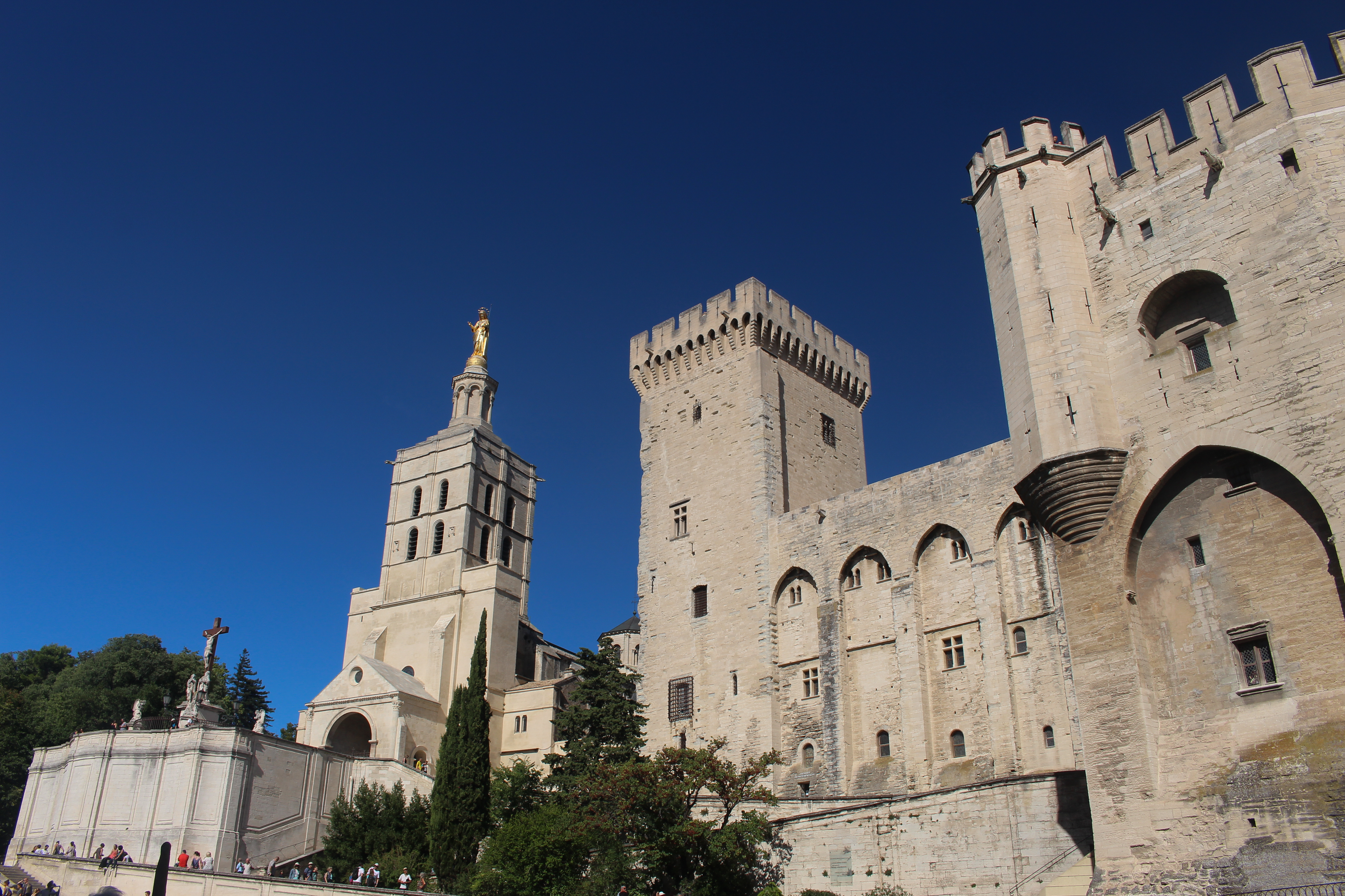 Our next stop was Avignon, a walled, ancient city on the left bank of the Rhône River whose name dates back to the 6th century BC! Being so old, it has a long history and has passed ownership many times—including to the Catholic Church. For all of you Catholics out there, seven successive popes resided in the Palais des Papes in Avignon, starting with Clement V in 1309.