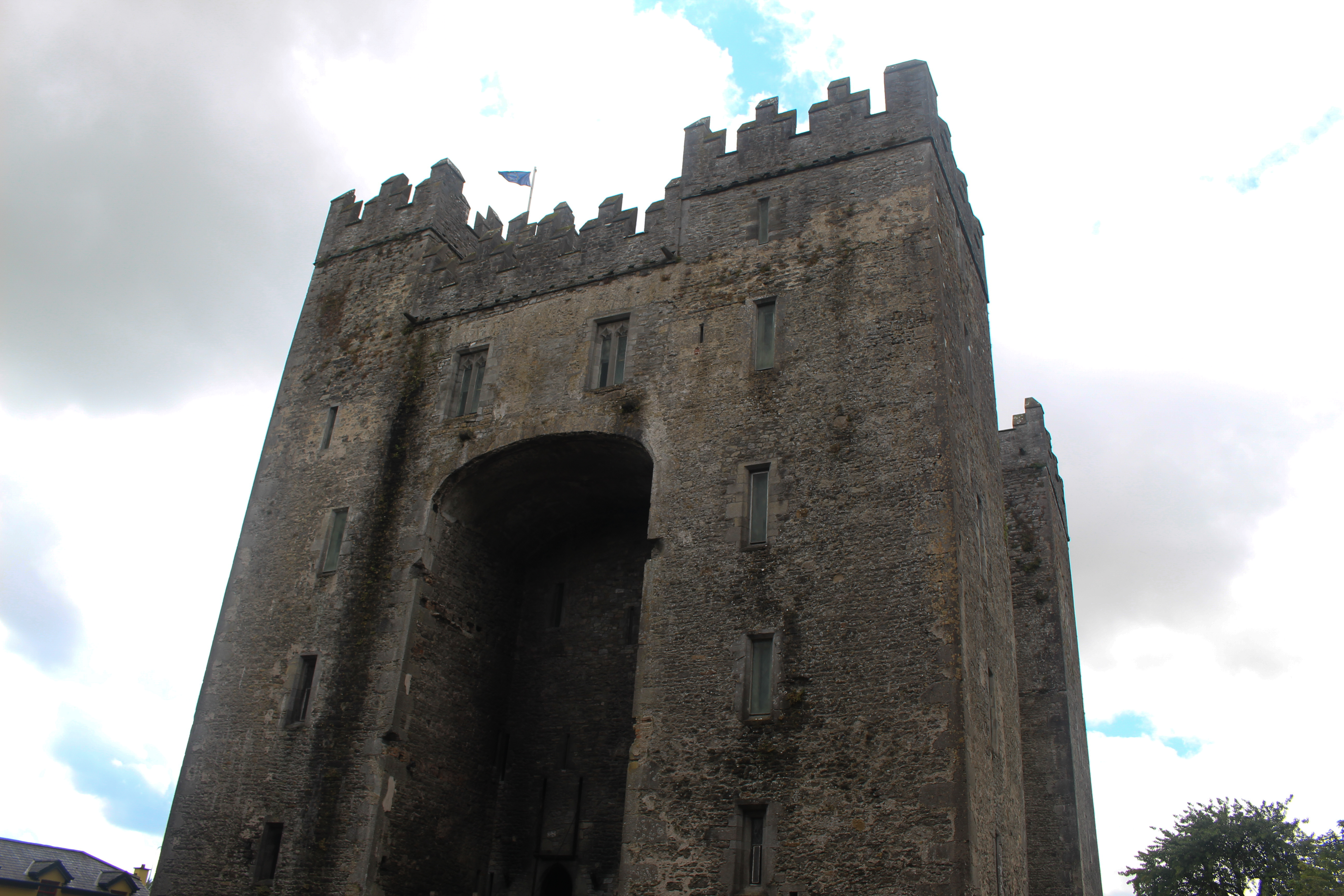 Just outside of Shannon we noticed a castle towering off the side of the road. Now, driving through Ireland you see your fair share of ruins; castles, churches, monasteries, etc., but this one was different. Even from the road, we could see it was clearly intact. Having been on the road for a little over an hour at that point, we were both ready for a break, so we decided to take a detour to the castle, which we soon learned was called Bunratty.