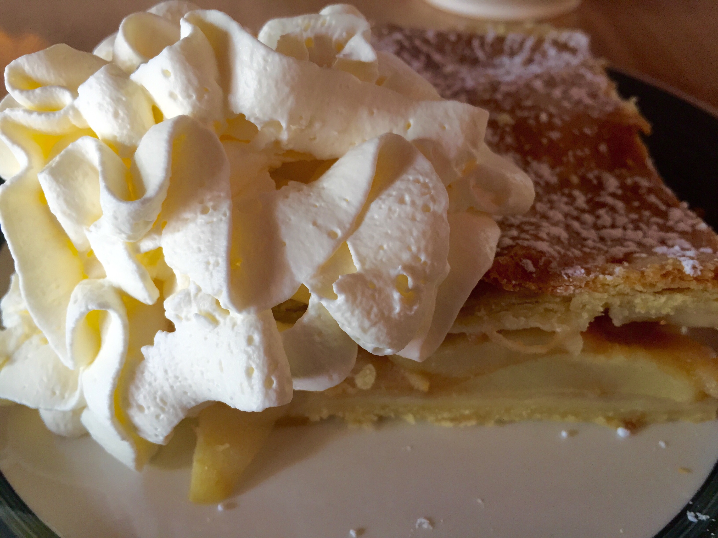 Before we left, however, we made sure to stop for a bite at the tea room where we dined on pulled pork sandwiches (we could smell and see lunch roasting on a spit outside) and fresh apple tarts that we saw two women preparing in one of the old houses.
