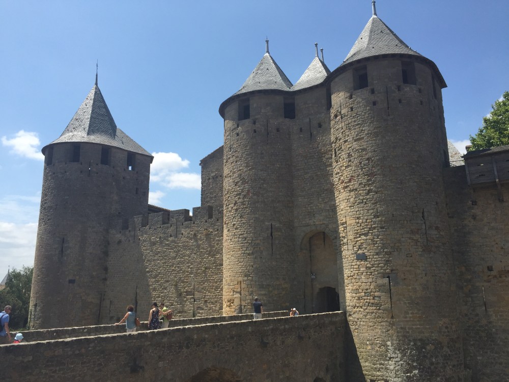 Our drive took us up the hill and we parked outside the towering ramparts. The medieval portion of the city towers above everything below it, not just because of its massive walls, but because it is perched on a hill above the valley below. You can see it clearly from the highway as you drive from Toulouse towards the Mediterranean.