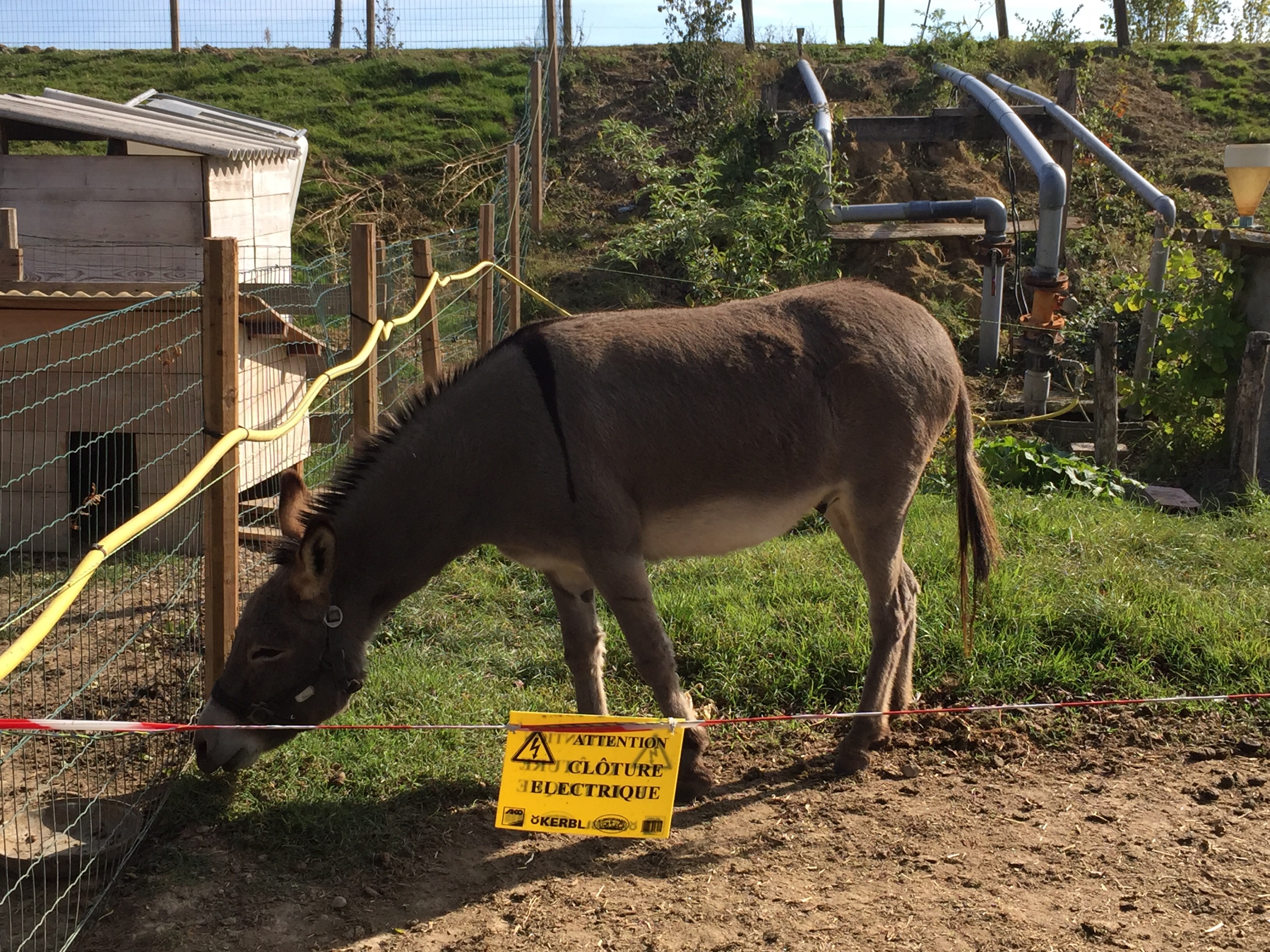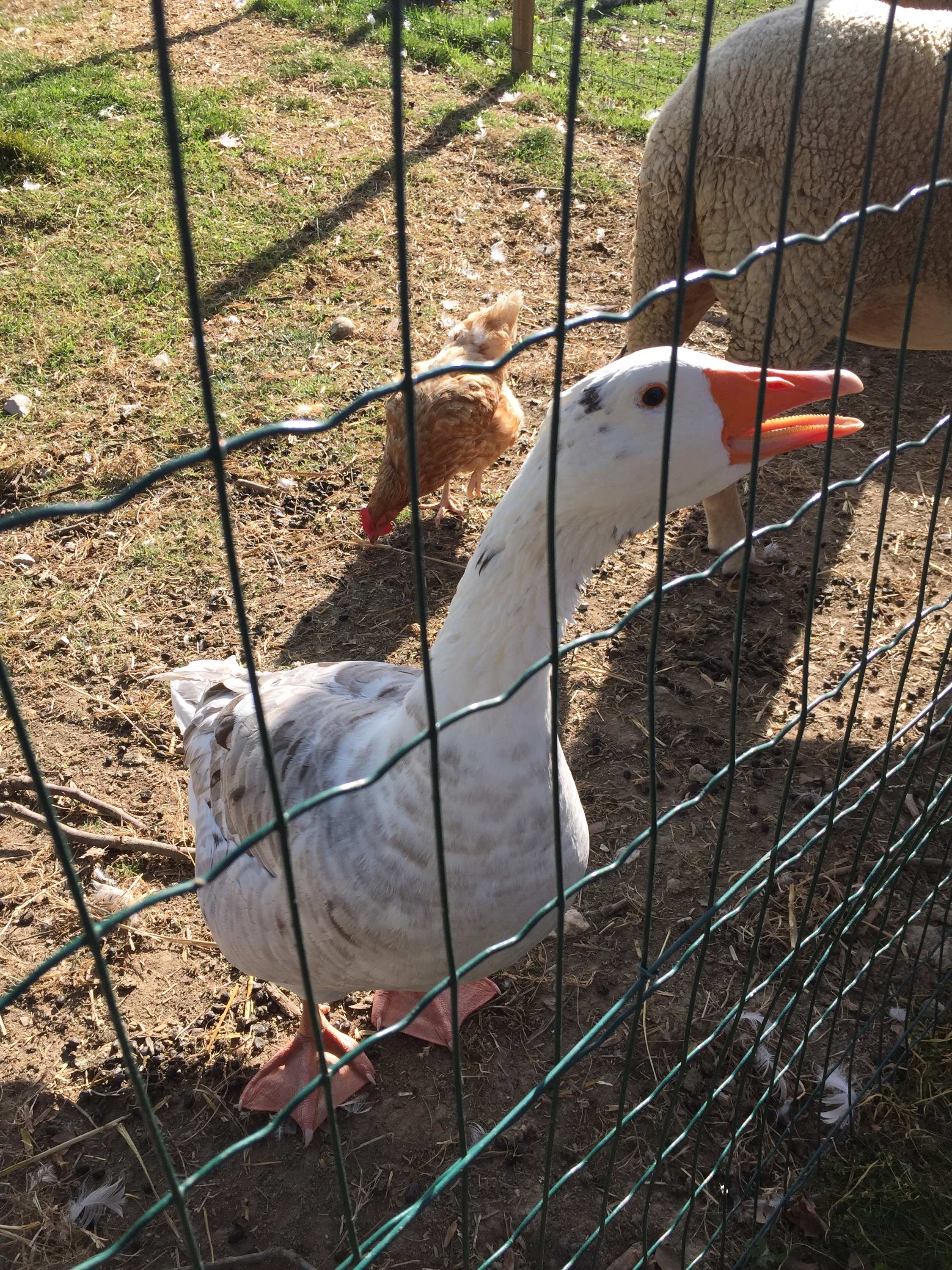We pulled up a bit early at the farm (they started the tour promptly at 4:00), so had to wait a few minutes. Luckily there was a pen with farm animals (including a hissing goose, a fuzzy little chicken that I never could get a good picture of, a black pig and a friendly donkey) that entertained us for a bit.