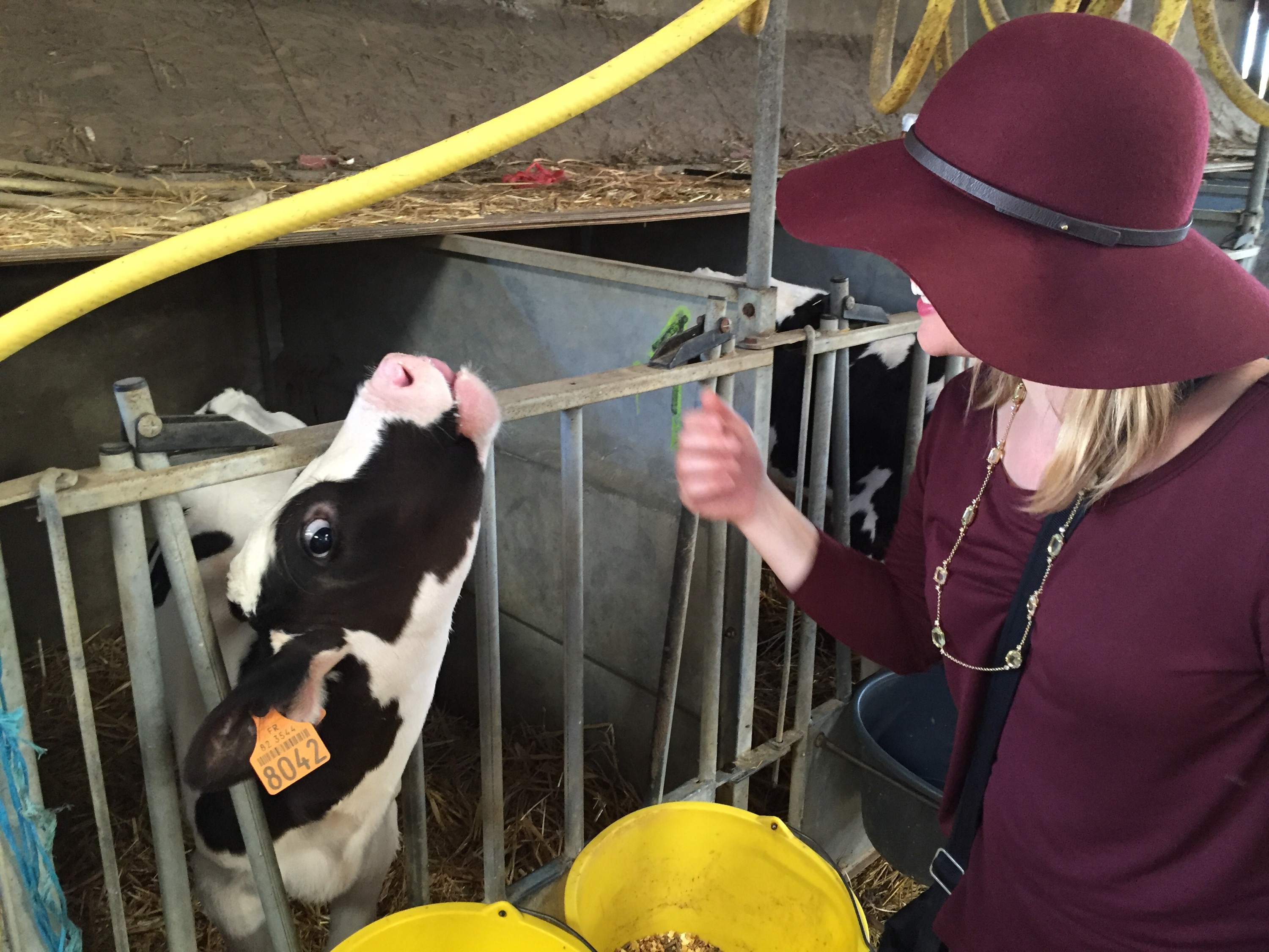Next we were taken into the bigger barn on the property and were able to see all the cows. There were baby cows (just days old), teenage cows and mama cows who went on their own into the milking stalls.