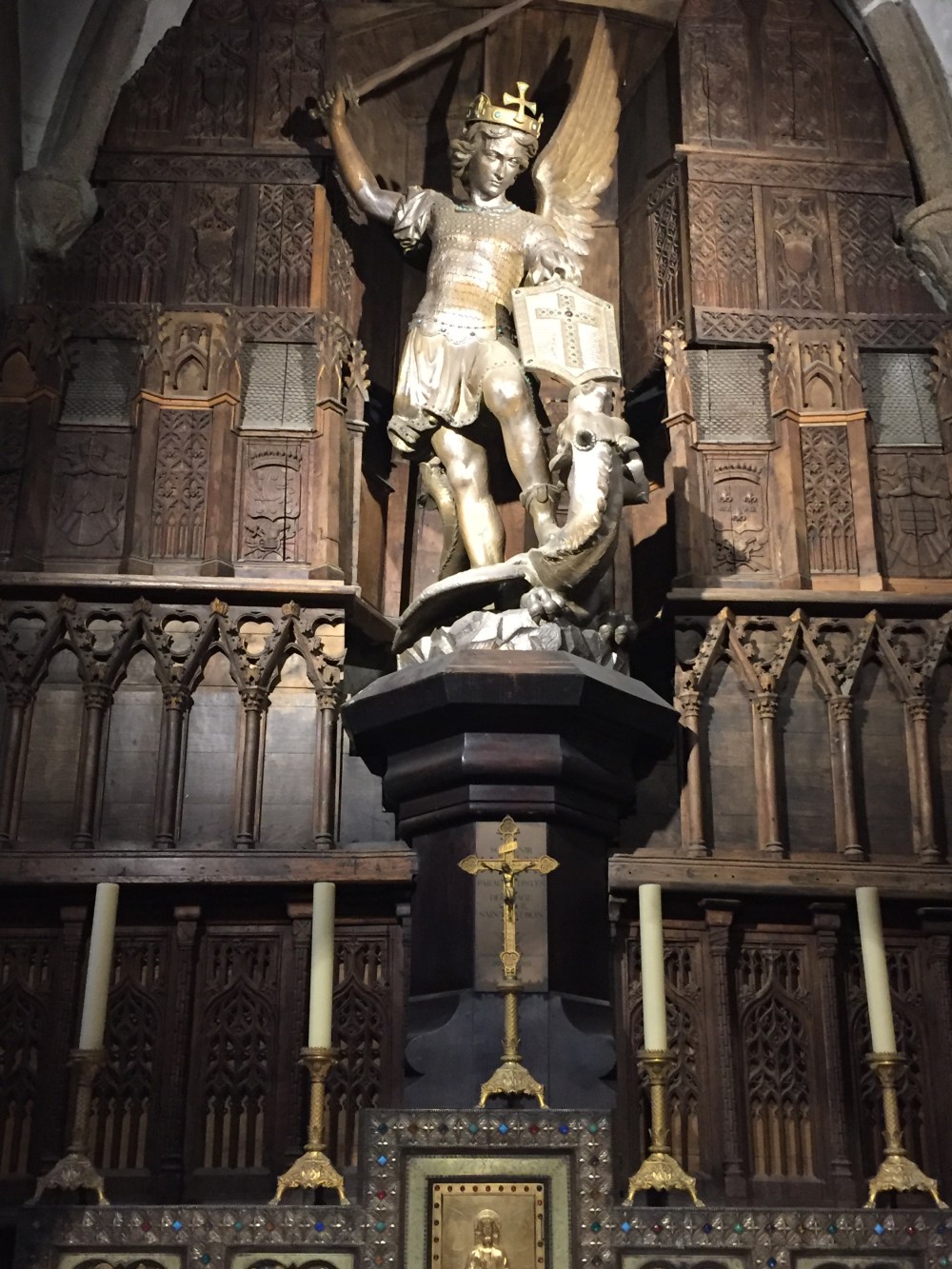 Eventually we made it to the top of the Mount and purchased our tickets to tour the abbey. We started the tour with a slightly closer look at the spire on which St. Michael is perched overlooking the fascinating old town below.
